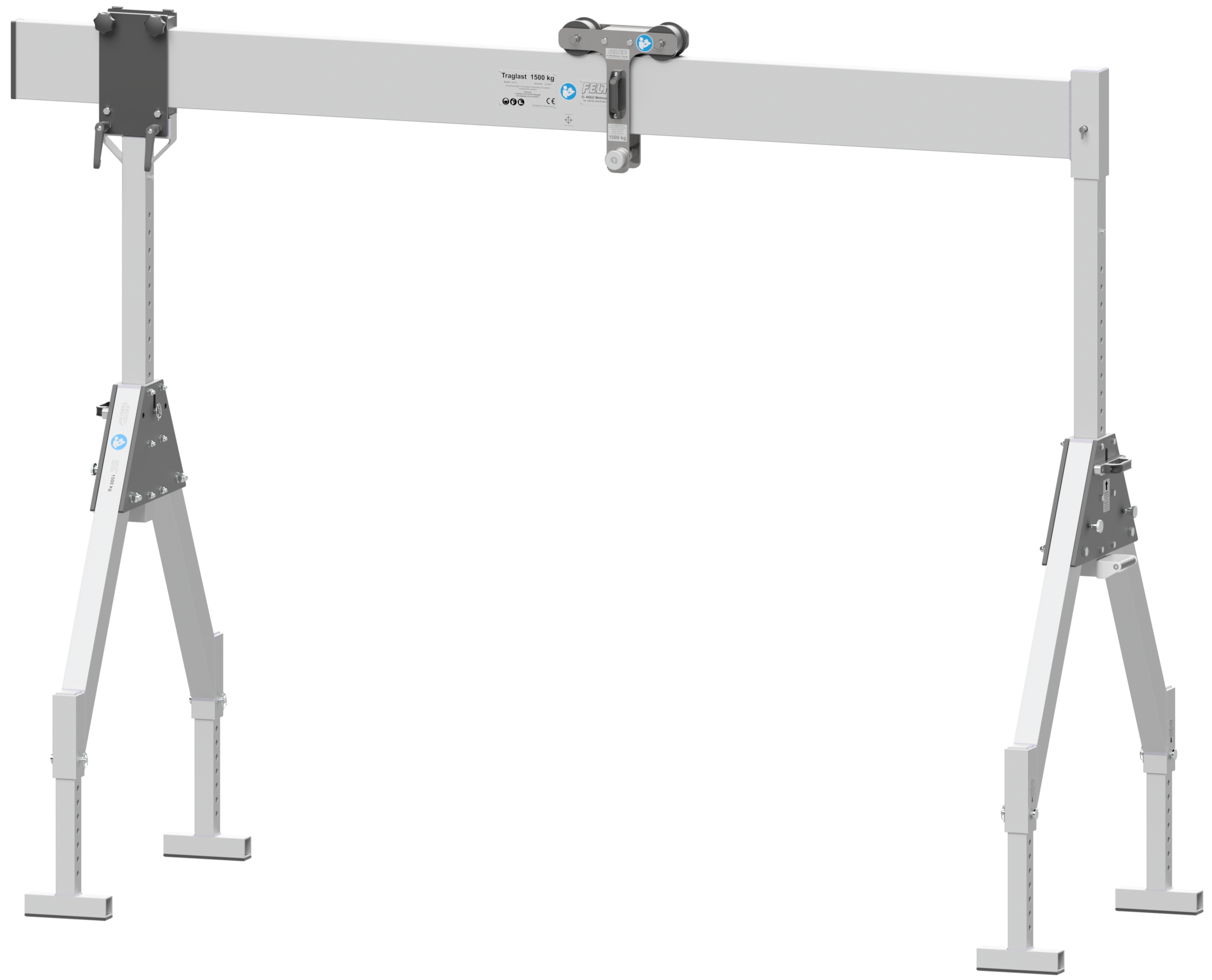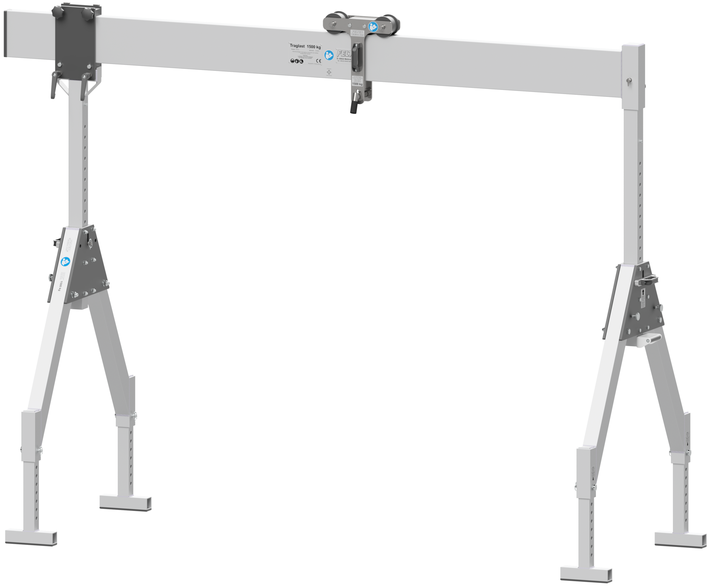 Der Feltes Kran Klappbar lässt sich in wenigen Minuten auf- und abbauen und ist dank seiner klappbaren Seitengestelle leicht zu transportieren.